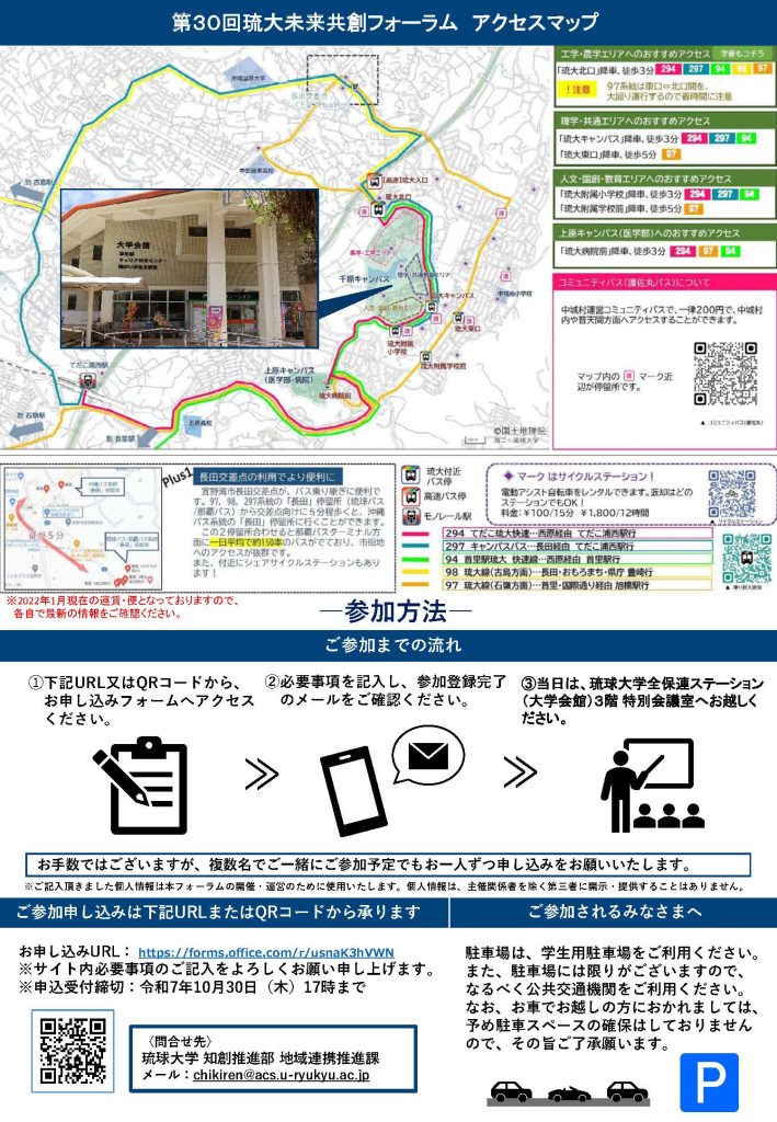 <第30回 琉大未来共創フォーラム>を下記のとおり開催いたします。このフォーラムは、琉球大学のビジョン「地域とともに豊かな未来社会をデザインする大学」の実現に向け、地域社会とのコミュニケーションの場として位置づけております。多くの皆様のご参加をお待ちしております。